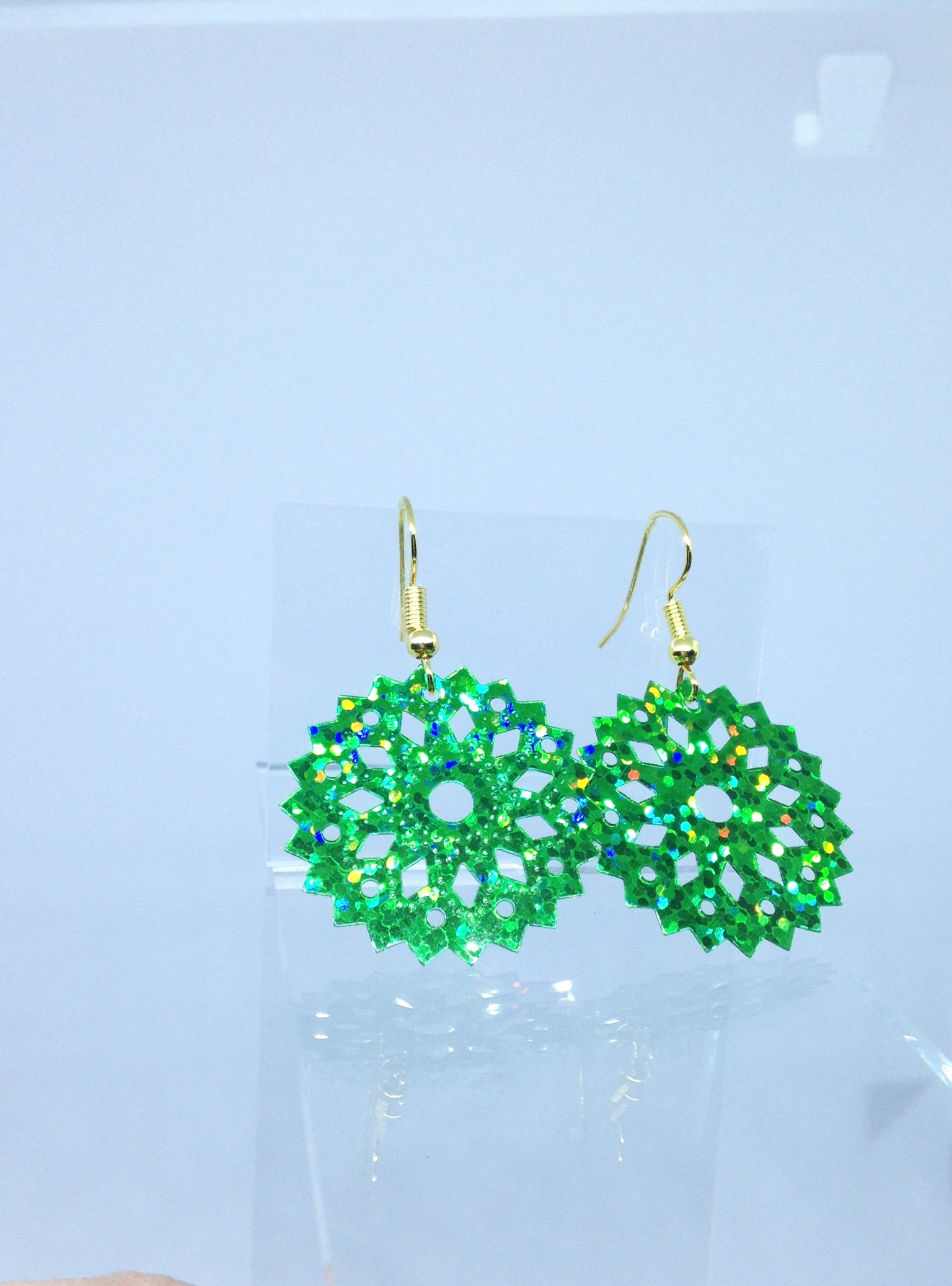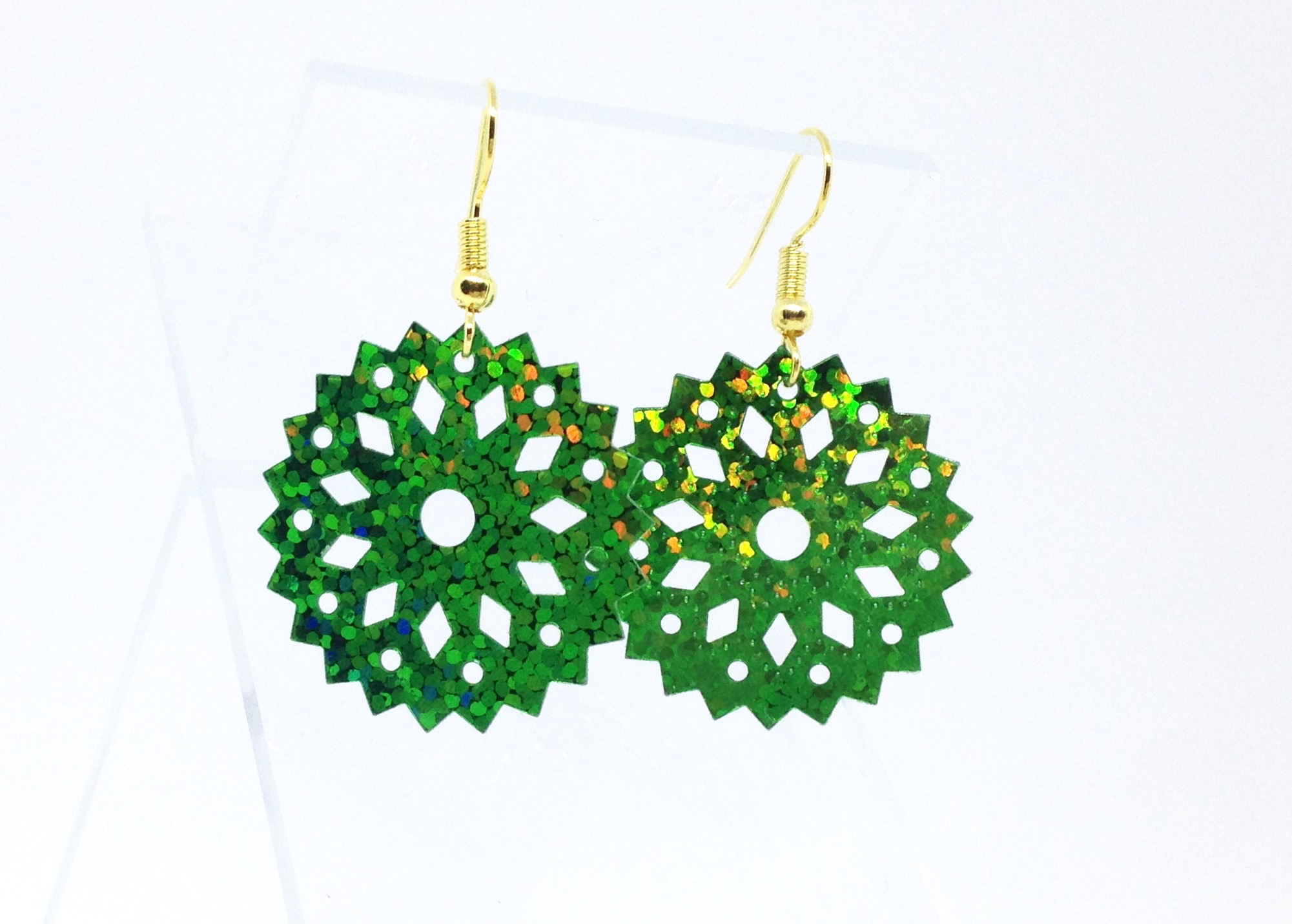 Boucles d’oreilles flocon vert pour Noël