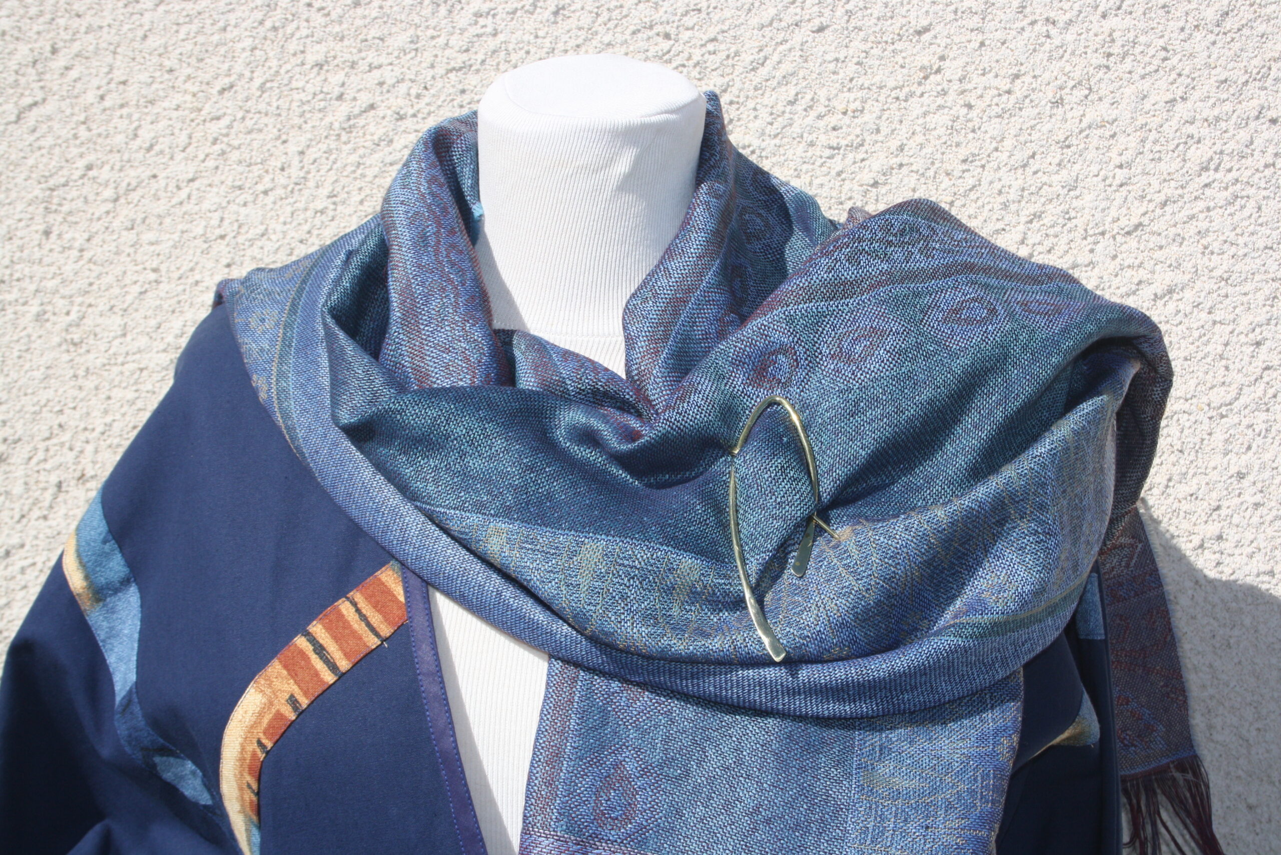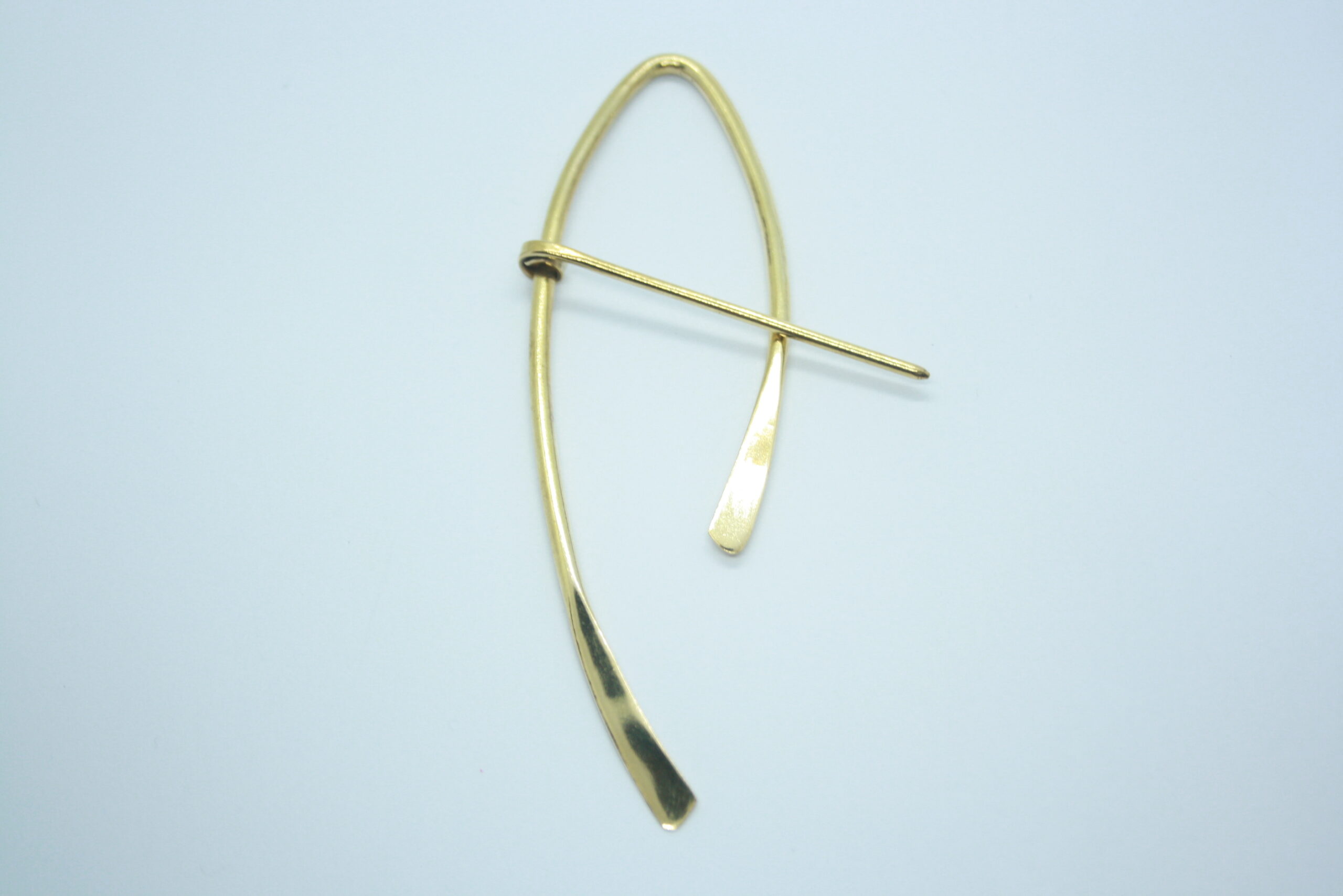 Fibule au design moderne en laiton pour maintenir un châle au quotidien ou rehausser une tenue élégante.