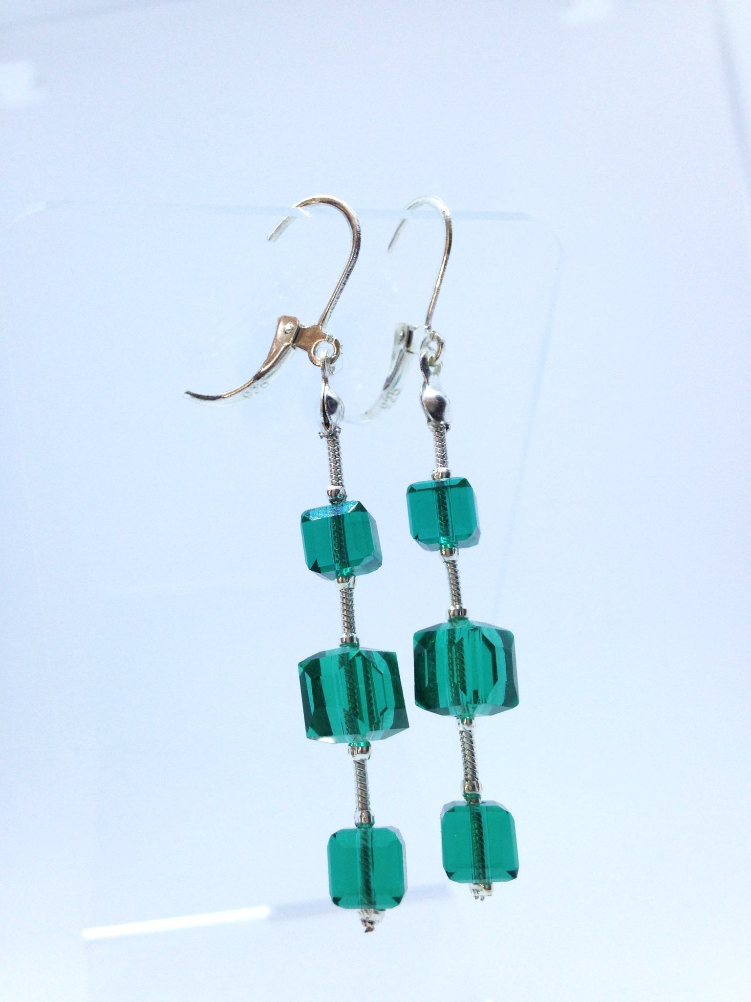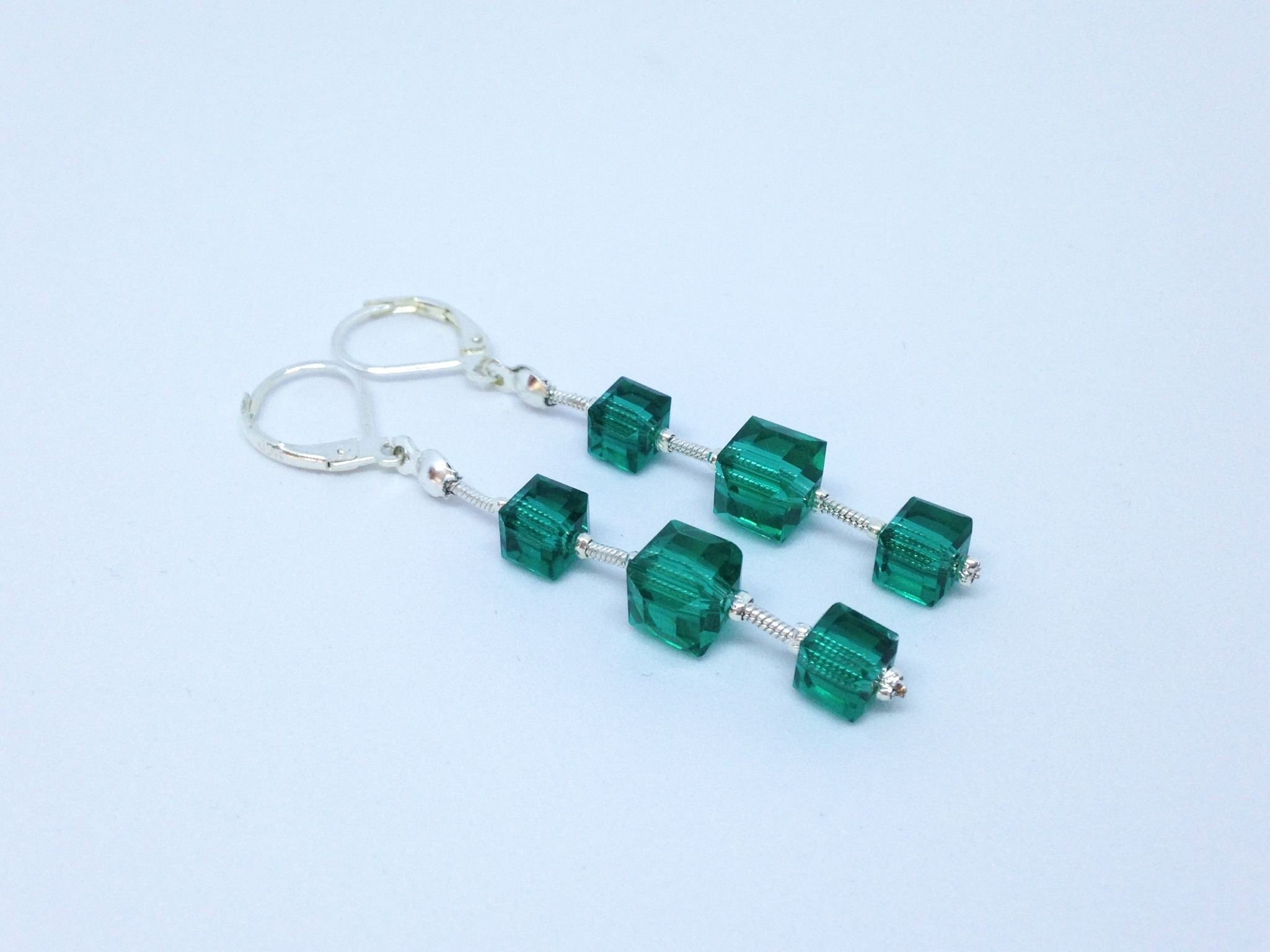 Boucles d’oreilles pendantes avec cubes verts foncés