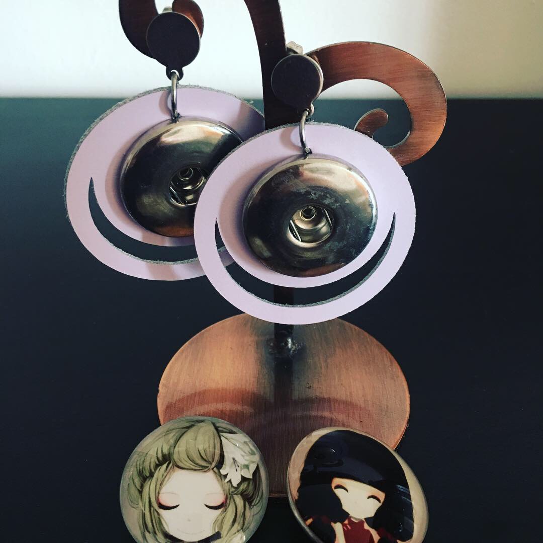 Boucles d’oreilles en cuir lilas très clair pour pression 30mm