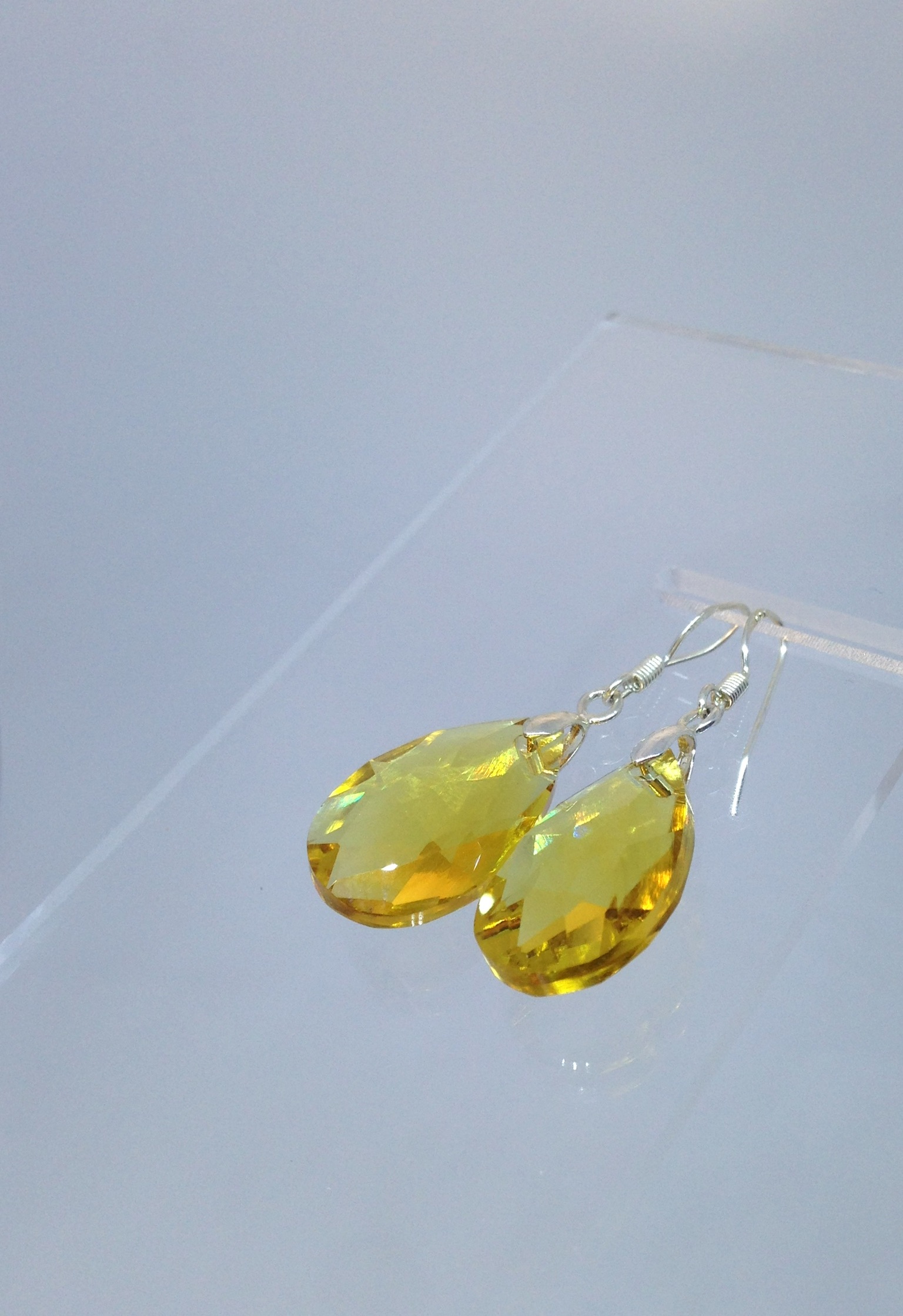 gouttes jaunes facettées en verre poli avec brillants de grande taille.