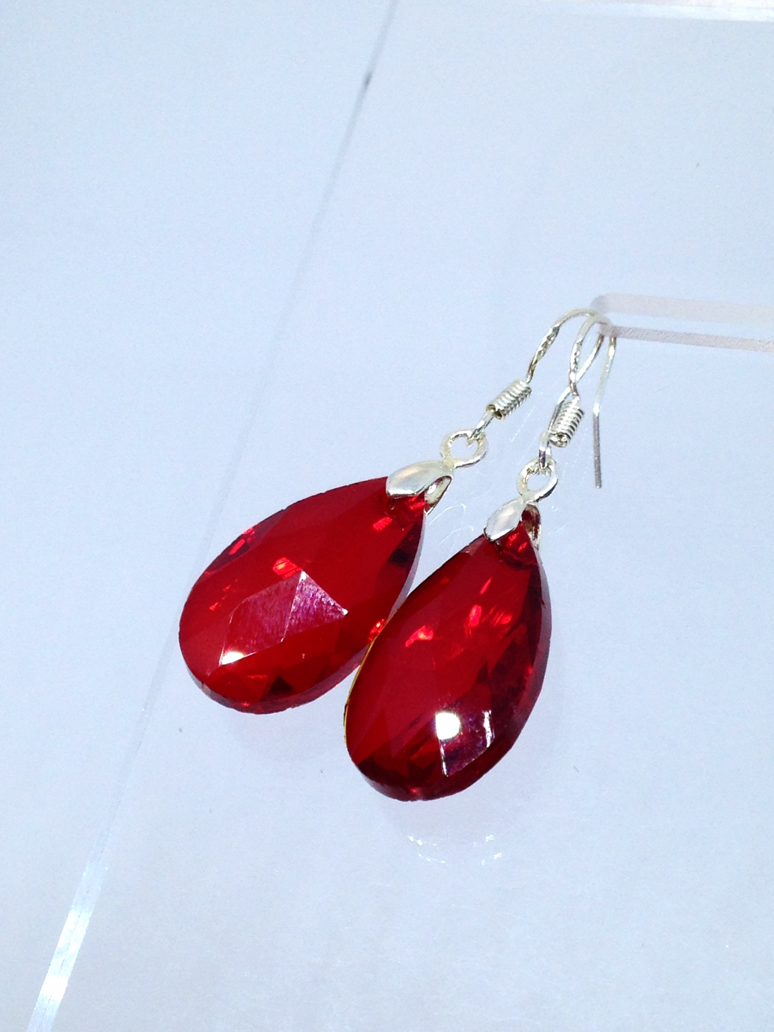 gouttes rouges facettées en verre poli avec brillants de grande taille.