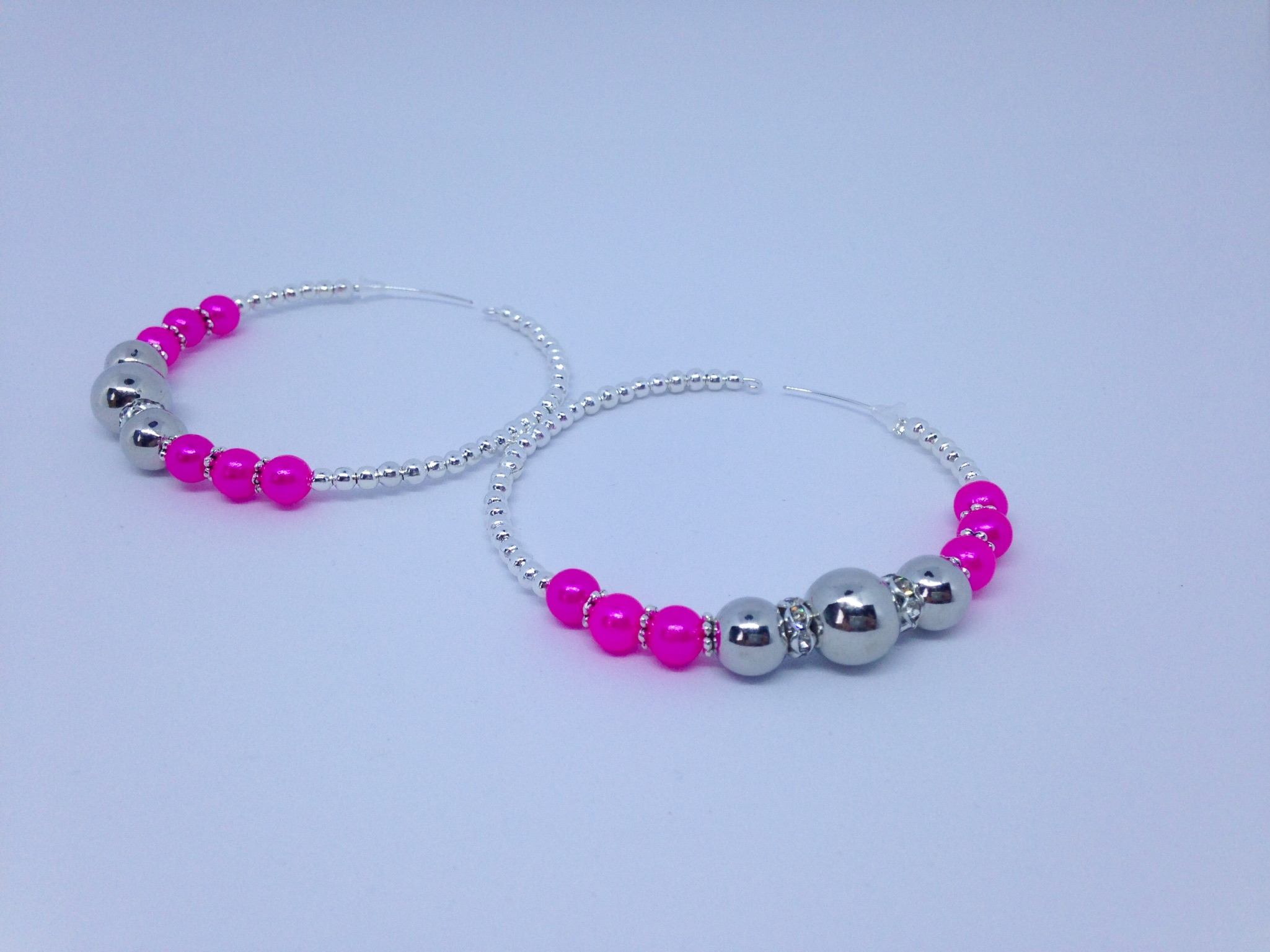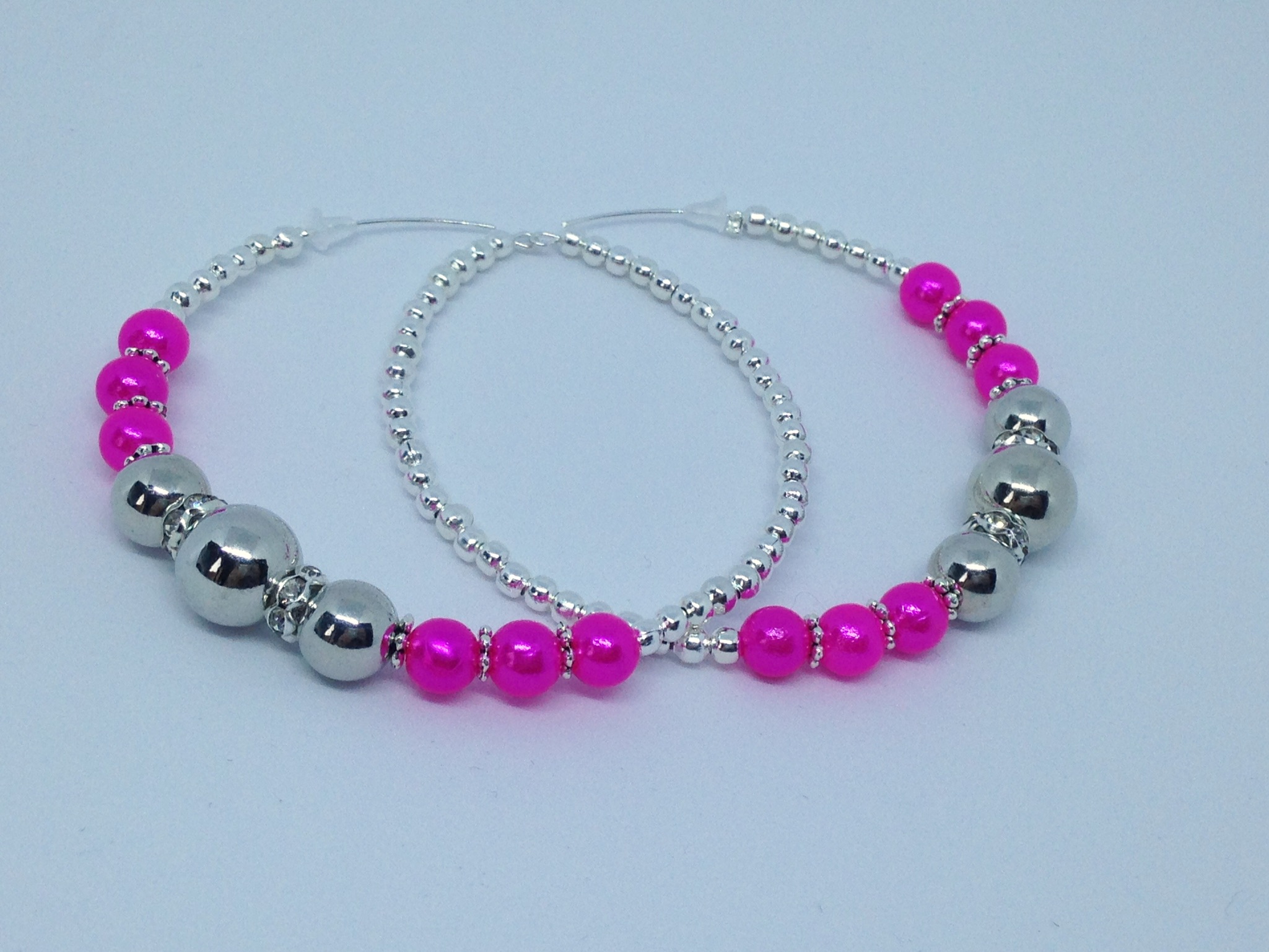 Bracelet « créole » fuchsia avec entretoises brillantes et perles argentées