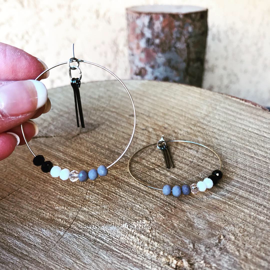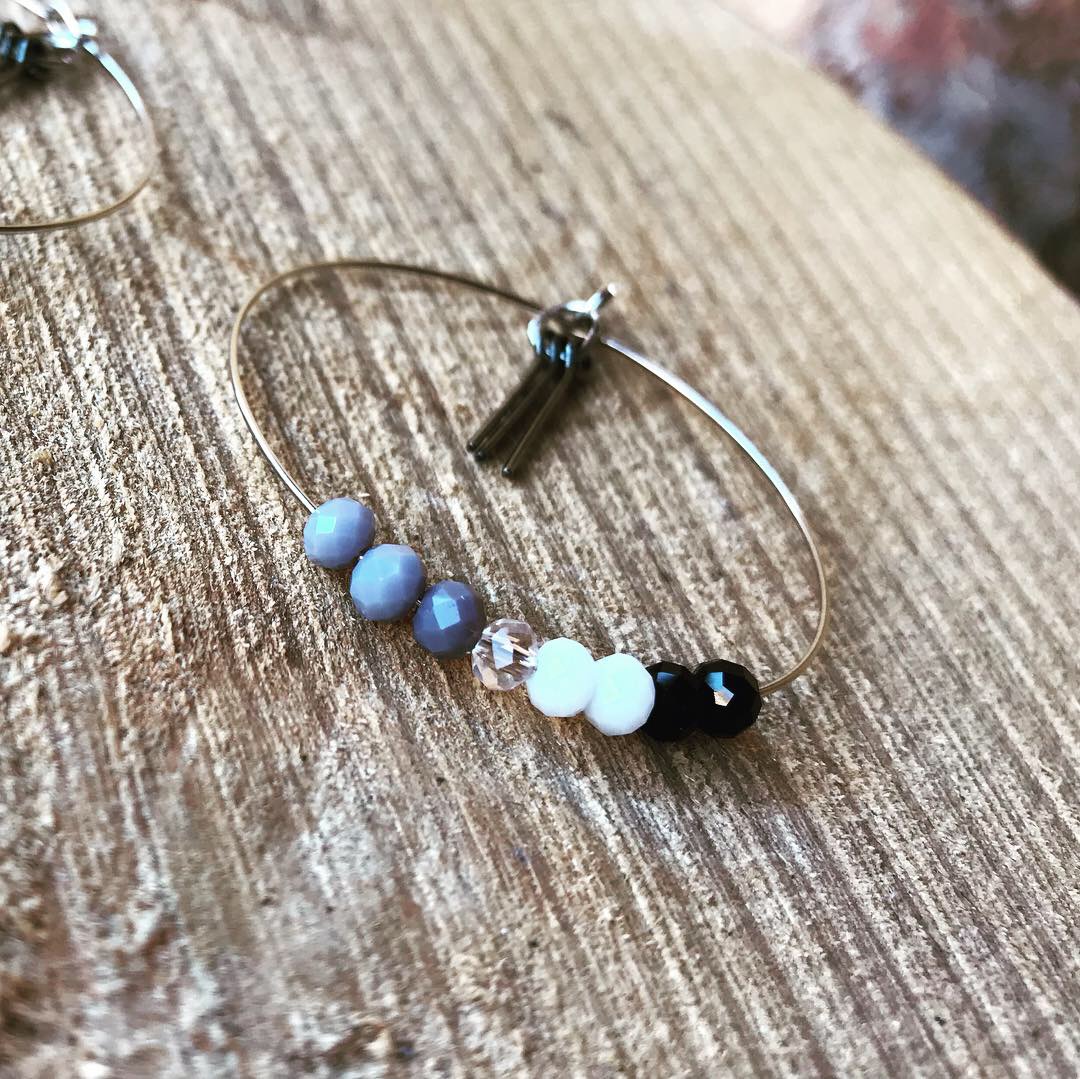 Boucle ronde, taille moyenne nommée « Shadow » avec les perles dans les tons grises