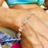 Bracelet fin argentée avec les cristaux carrés épousant la forme de la poignée avec les cristaux réfléchissant la lumiere arc-en-ciel.