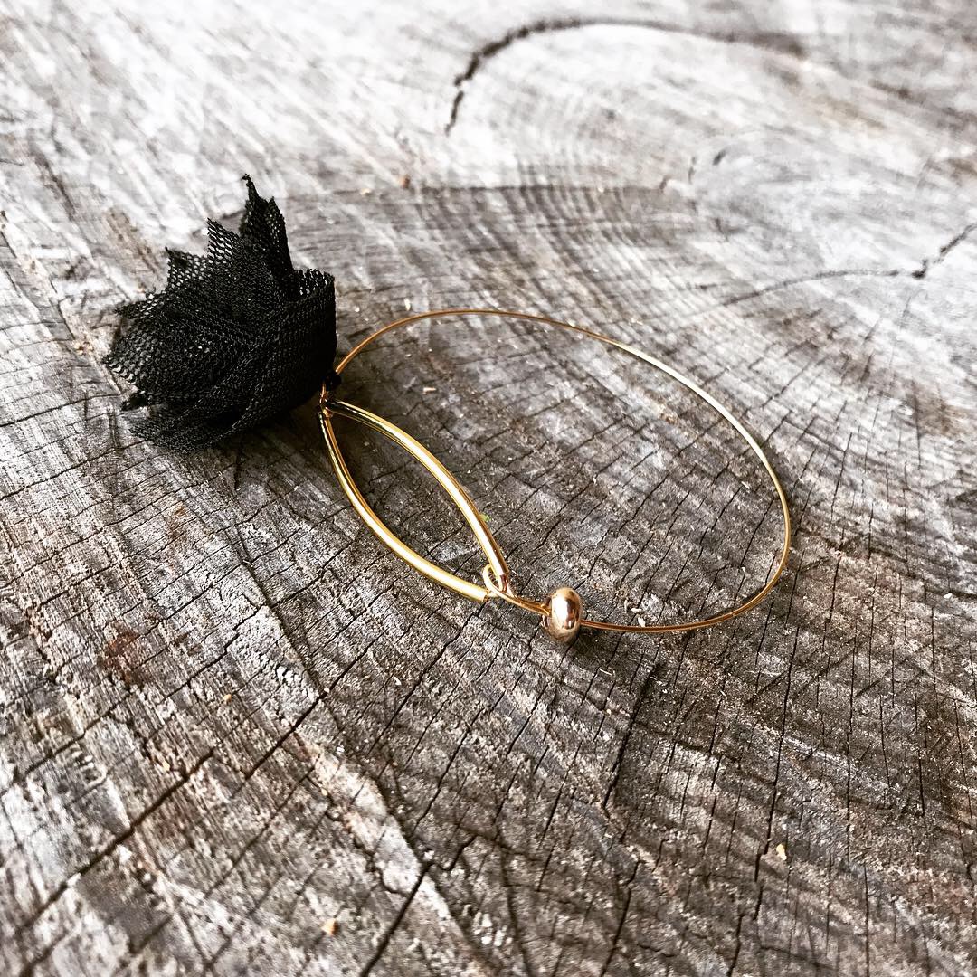 Bracelet mémoire de forme plaqué or et pompon noir