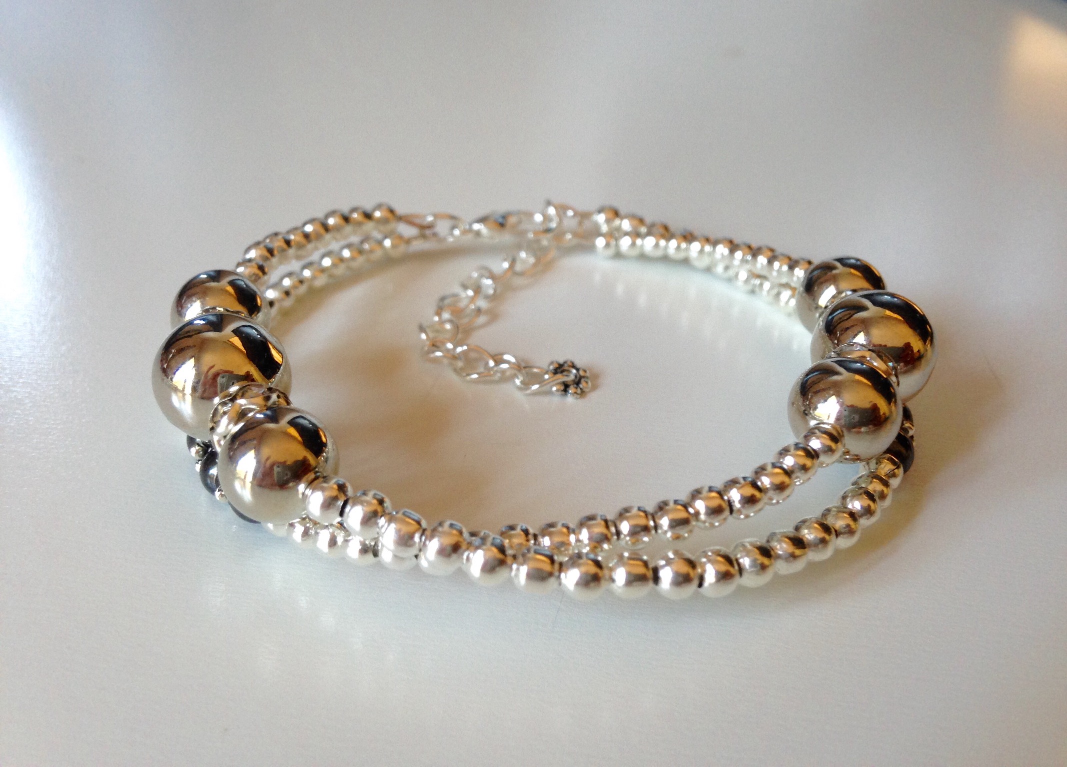 Bracelet mémoire de forme avec perles miroir, grises foncées et entretoises brillantes