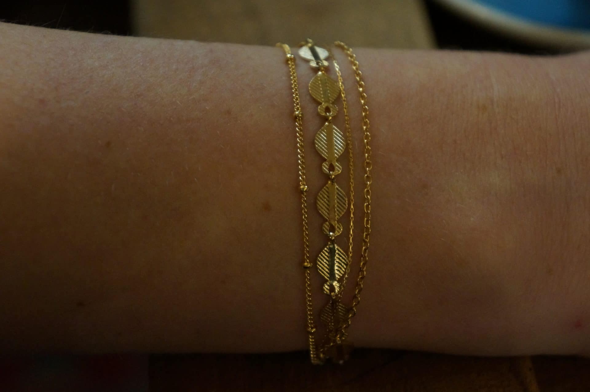 Bracelet double avec perles miroir et entretoises garnies de mini brillants