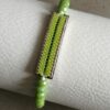 Bracelet manchette tissage peyote ton vert et argent collé sur une plaque acier inoxydable argent taille 38 mm par 10mm