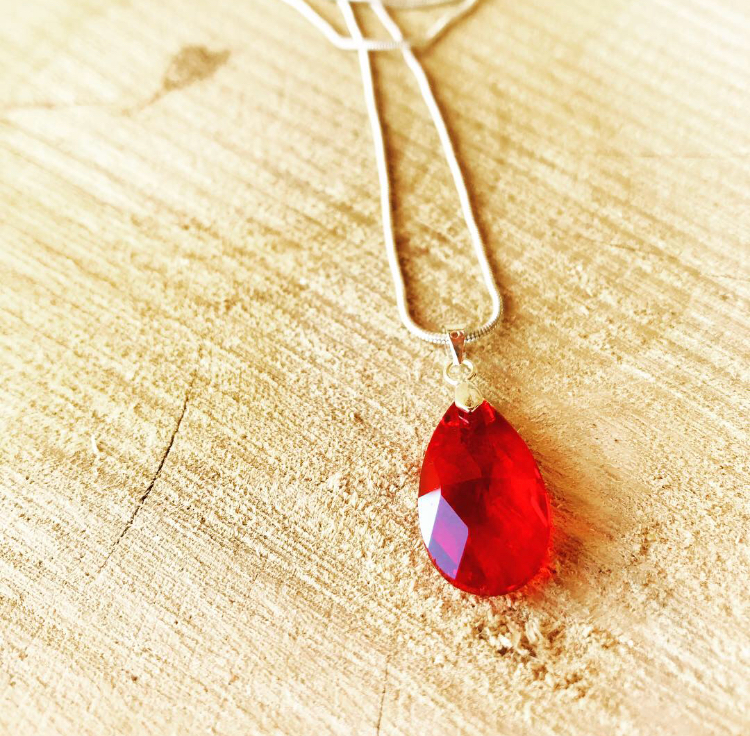 pendentif en goutte rouge vif de hauteur de 2,5 cm