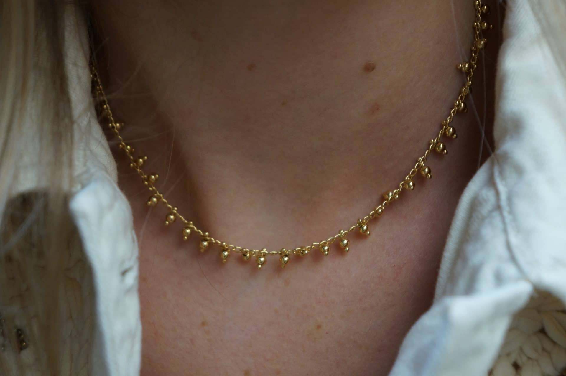 Collier ras de cou dorée à l’or fin 24k à 1 micron, sans nickel ni plomb, plaqué en France